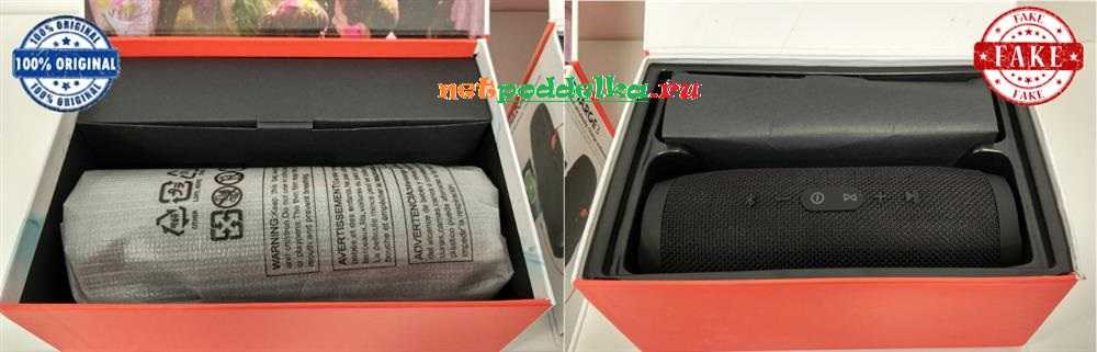 Есть отличие JBL от подделки и в комплектации. Мошенники часто не долаживают тот или иной элемент. Иногда наоборот в коробке можно обнаружить дополнительные аксессуары, которых нет у оригинала.