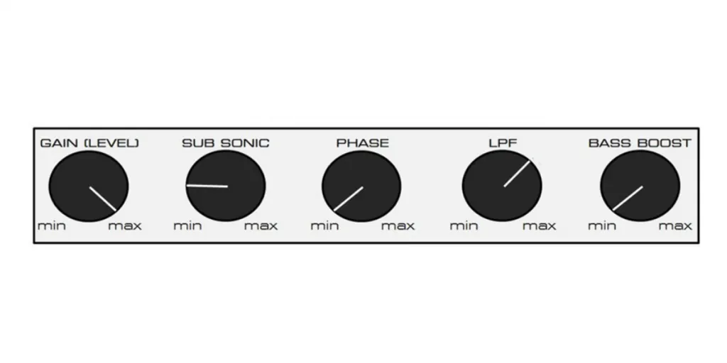 За счёт воспроизведения низких частот блок позволяет расширить динамический диапазон любого музыкального произведения. Акустические колонки, расположенные в дверях или на передней панели не предназначены для уверенного воспроизведения басов. С этой задачей хорошо справляется правильно настроенный сабвуфер. На панели басового автомобильного усилителя расположены несколько регулировок, которые позволяют точно настроить низкочастотную акустическую систему. Настройка активного сабвуфера в авто на усилителе включает в себя следующие регулировки: