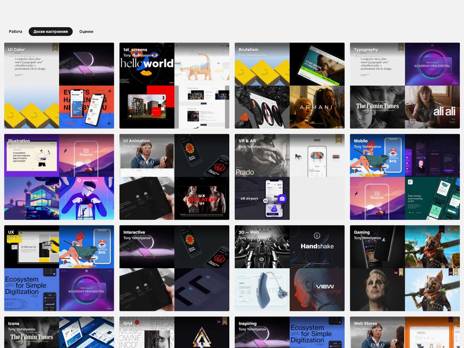 Улучшать уровень своего дизайна помогут доски настроения. Можно создавать их самим или подписываться на уже созданные другими пользователями.
