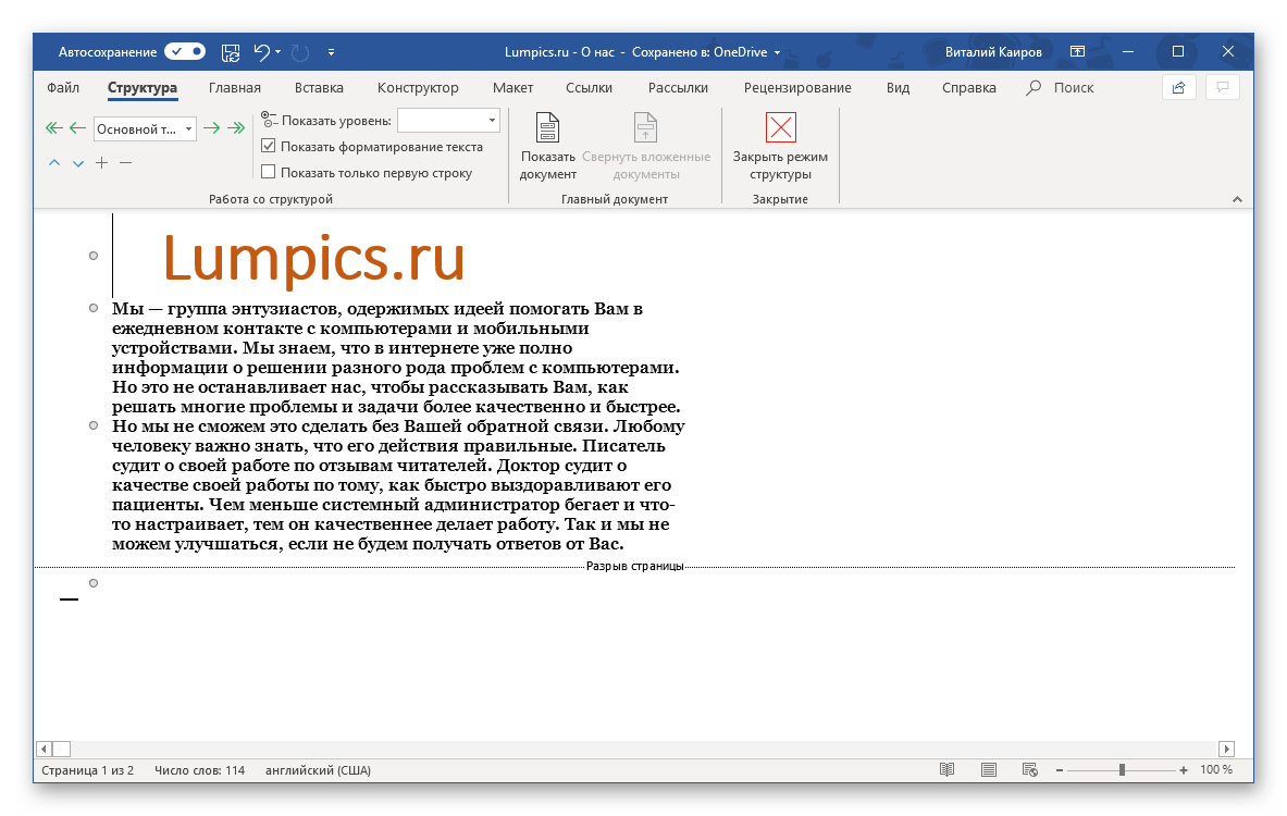 Если вы работаете с документом в режиме «Разметки страницы», но при этом видите только горизонтальную линейку, необходимо выполнить следующее: