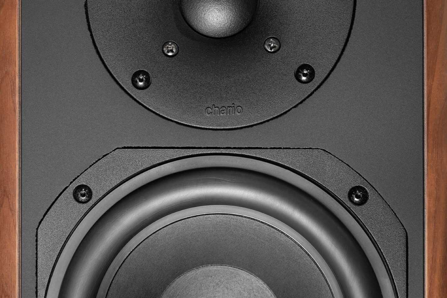 Связующим звеном выступает СЧ-головка того же диаметра, расположенная на передней панели. На долю ее ответственности приходится наиболее информационно-значимый диапазон частот — от 170 Гц до 1,5 кГц — где сосредоточены основные тона голосов и большинства инструментов. Разработчики акустики Chario традиционно опираются на результаты психоакустических исследований, которые показывают, что на этом пути можно добиться максимальной чистоты и разборчивости звучания.