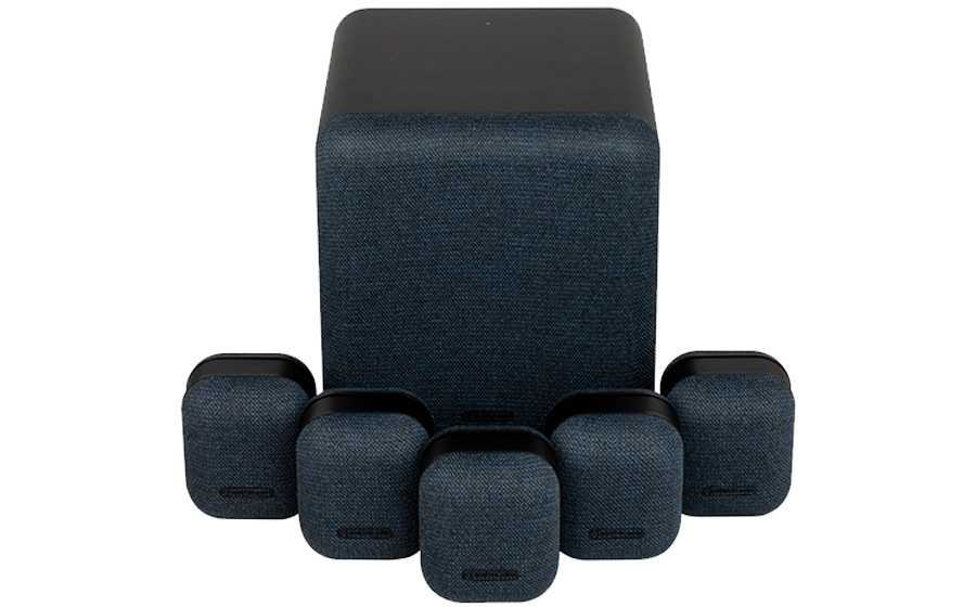Для озвучивания вертикального аудиоканала в конструкцию соответствующего сателлита добавлен один 100-мм широкополосный излучатель, также имеющий диффузор из Polyflex. Грили сателлитов — несъемные, они выполнены из металла, перфорированного небольшими круглыми отверстиями и в зоне работы излучателей имеют вогнутый профиль, позволяющий управлять направленностью излучения.