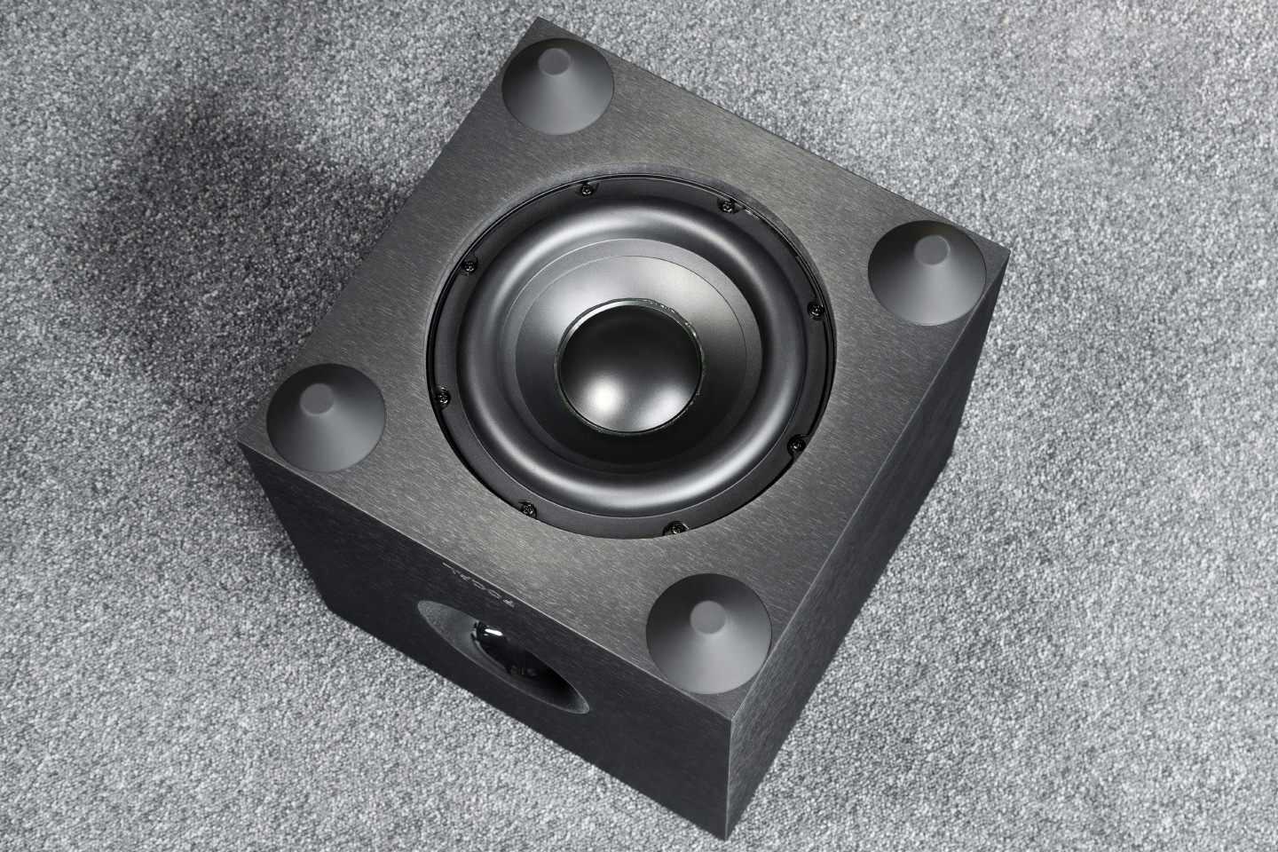 Динамик сабвуфера оснащен 210-мм конусом из Polyplex. Размер по сабвуферным меркам сложно назвать крупным. Широкий резиновый подвес обеспечивает ему достаточно большой рабочий ход, а усилитель класса D дает повод ожидать быструю реакцию.