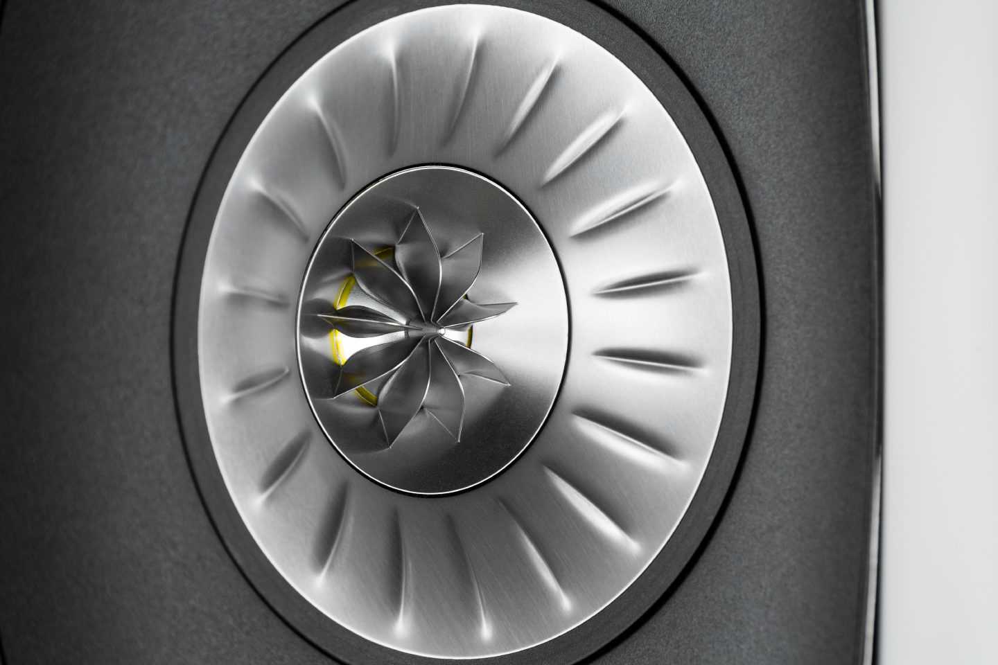 Другая специфическая проблема возникает при колебаниях твитера — находящийся под диффузором воздух сжимается и вносит искажения в звуковую картину. Чтобы избежать этого эффекта, конструкторы KEF оборудовали твитер системой вентиляции в виде узкого сквозного канала со специальным абсорбирующим составом. Эта конструкция поглощает нежелательные колебания, избавляя звук от компрессии.