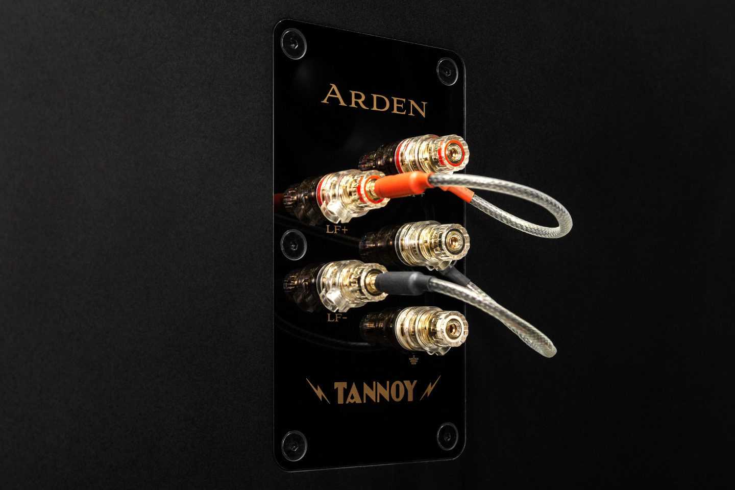 The gold-coloured crossover panel enables tweaking of the Arden’s treble performance by means of two gold-plated finger bolts. The top bolt can be unscrewed and moved to reduce or increase treble energy, while the lower bolt adjusts treble roll-off. This is the same system as used in the original 1974 Arden models, although the crossover itself is all new.