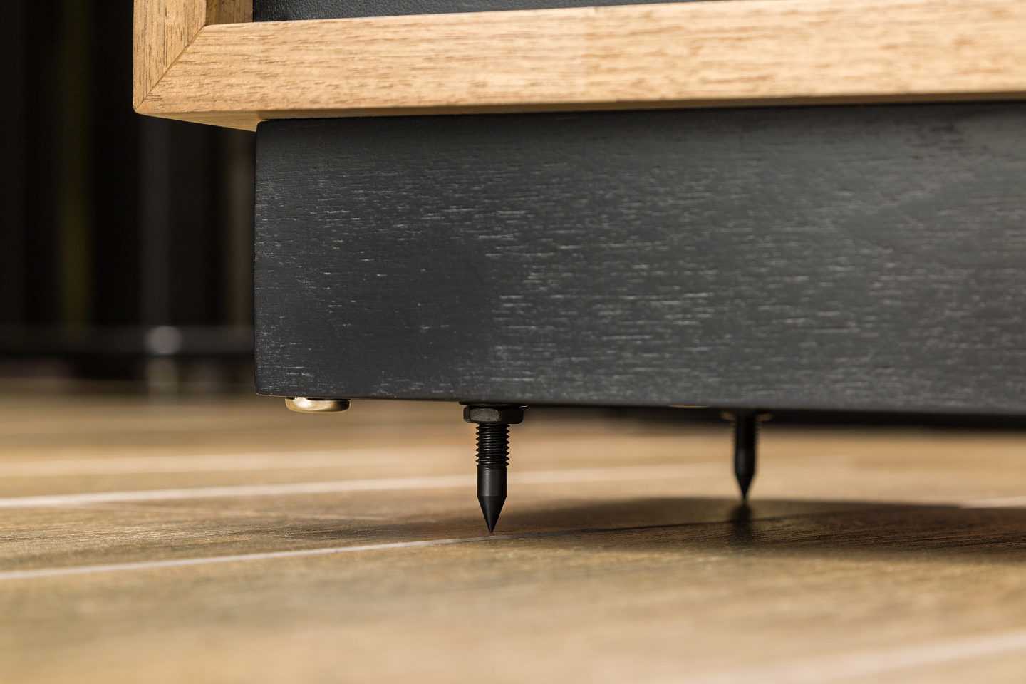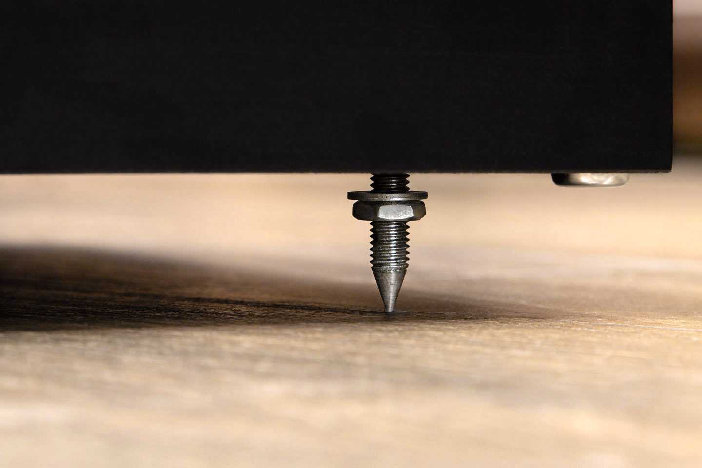 For contact with the ground, you get two screw-in choices – isolation spikes for carpets or adjustable feet for hard floors.