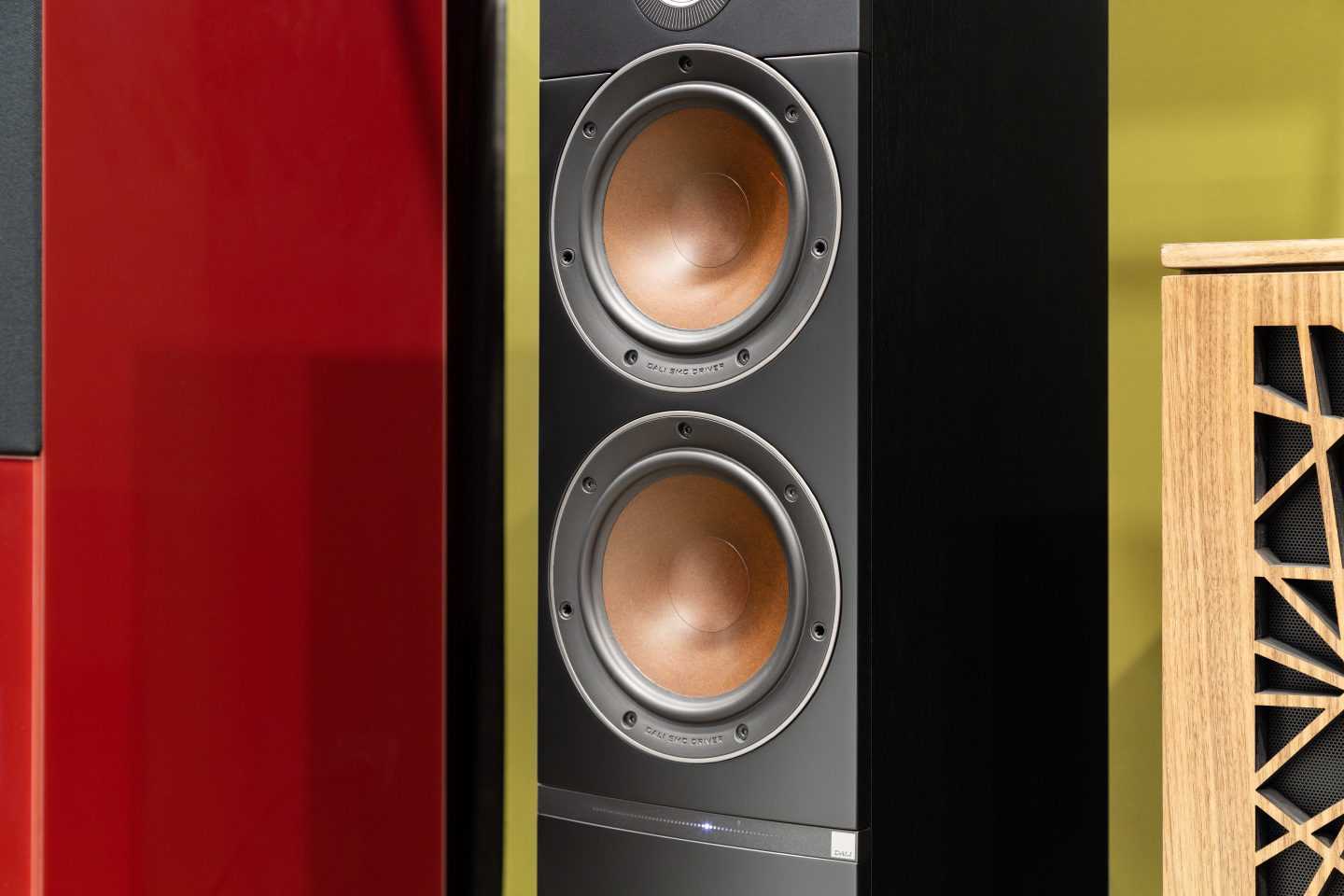 Итак, «башни» Callisto 6 C вооружены четырьмя динамиками, верхняя пара которых представляет собой фирменную гибридную сборку из купольного твитера и ленточного супертвитера. Интересно, что оба драйвера смонтированы на единой опорной пластине (это хорошо заметно по близкородственным моделям Rubicon), но в случае Callisto они разделены, а магнитостатический супертвитер декорирован круглой темной сеточкой. По словам дизайнеров DALI, таким образом они хотели еще раз подчеркнуть классическую хайфайную сущность новой разработки.