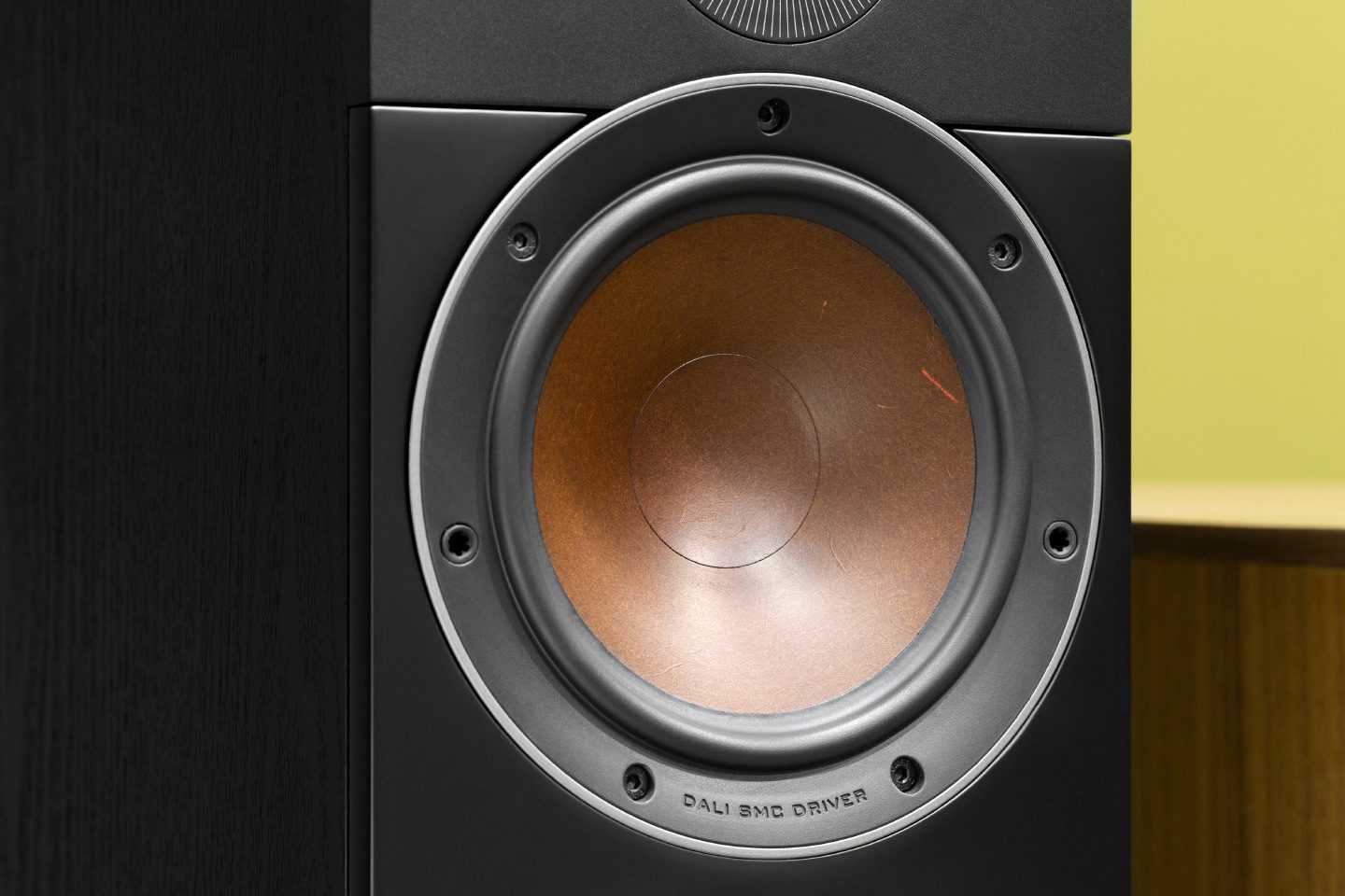 Диффузор низкочастотника в лучших традициях Dali выполнен из бумаги, армированной волокнами древесины хвойных пород, а купол пищалки — из мягкой ткани.