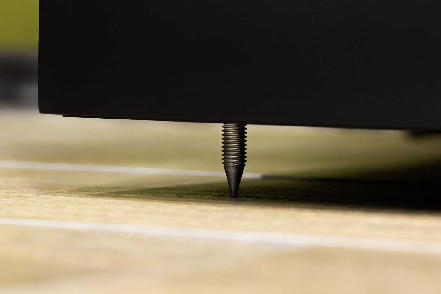 Внешняя отделка — матовый винил, разумеется, с имитацией фактуры натурального дерева. Учитывая общий стиль в духе классического Hi-Fi, какого-то другого оформления ожидать было бы странно, разве что помечтать о настоящем шпоне. Кстати, учитывая внушительную стоимость колонок, мысль не такая уж и крамольная.