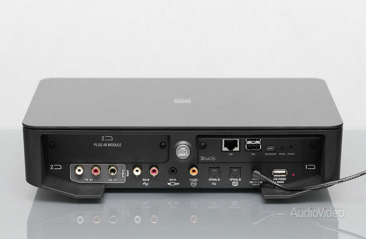 Однако вид на заднюю панель выдает сущность системы хай-тек с головой. Тут обнаружились и кнопка Connect, и подсвечиваемый индикатор положения колонки в музыкальной системе, и USB-порт, служащий, правда, исключительно для обновления программного обеспечения. Имеется и аналоговый вход, рассчитанный на подключение внешнего предусилителя, так что при желании сигнал можно запустить и в обход встроенного цифрового тракта (но не в обход усилителя).
