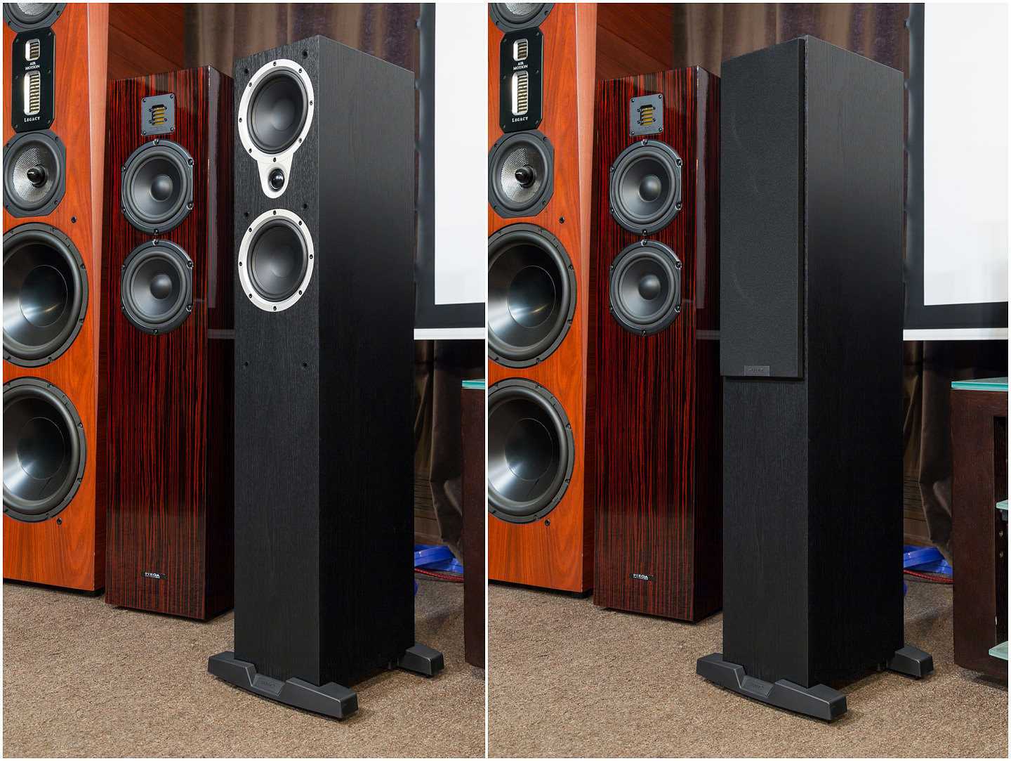 Напольная акустика Eclipse Three является флагманом линейки Eclipse. Она имеет пару СЧ/НЧ-динамиков калибра 127 мм, выстроенных относительно твитера симметрично, по схеме D’Appolito. Узкий высокий корпус с выведенным назад фазоинвертором установлен на двух пластиковых опорах, выходящих за основные габариты и оснащенных шипами с контргайками. Выглядит опорная конструкция небогато, но функцию свою выполняет в полной мере и является достаточно прочной.