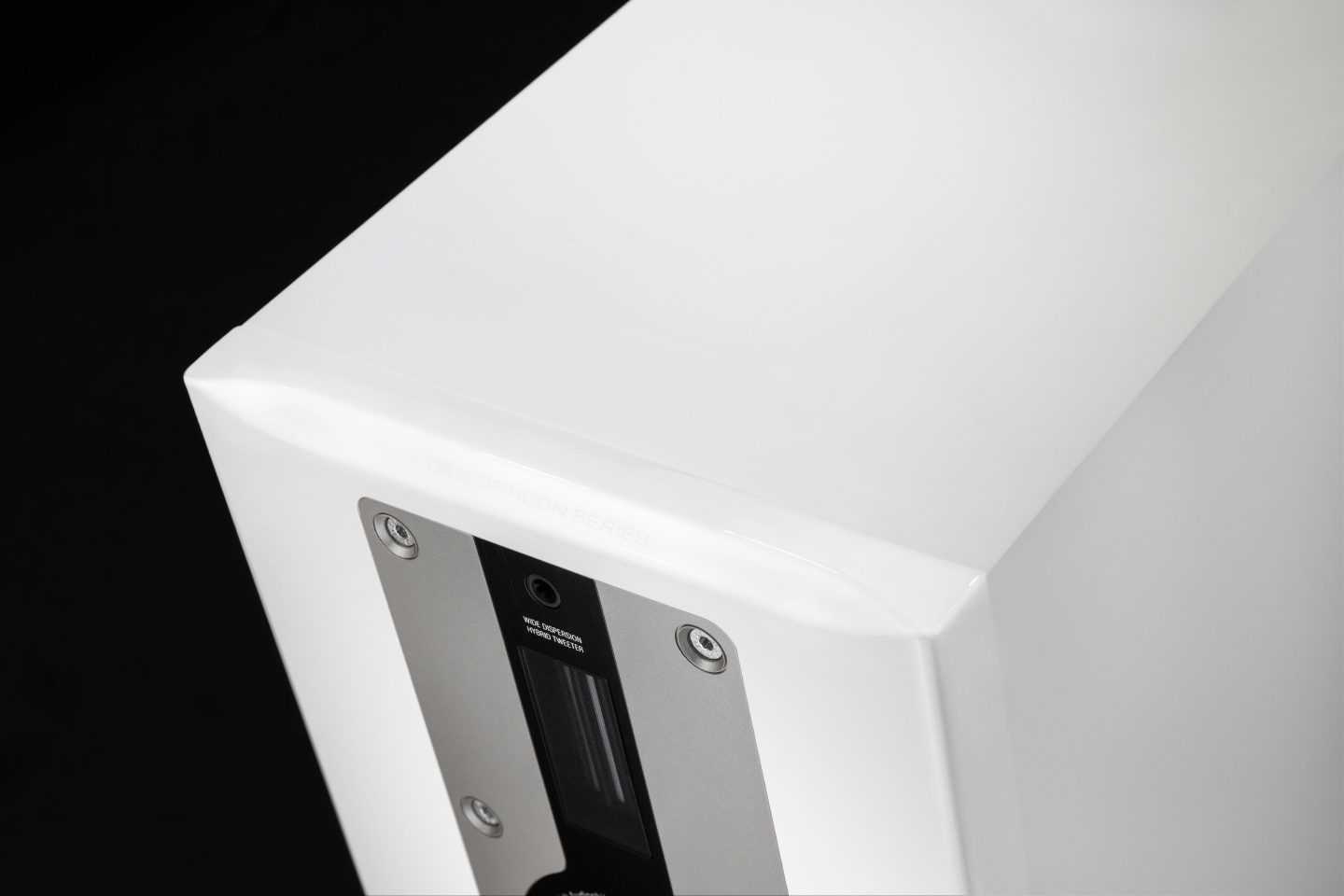 МДФ для корпусов нарезают на датской фабрике, там же вкручивают и динамики. В корпусе используют листы двух вариантов: для фронтальной панели потолще, аж 25 мм. В белой версии основной корпус покрыт сатиновым винилом без структуры дерева дерева, а фронтальная панель выделена глянцем, на котором серебрятся блок с твитерами и логотип, да темнеет кольцо вуфера.