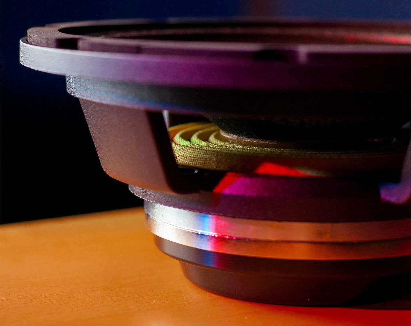 Он является нижним и по отыгрываемому диапазону частот — задокументирован низкочастотный предел от 18 Гц. Это 8-дюймовый вуфер с впечатляющей предельной экскурсией в 4 см. Катушка с алюминиевым каркасом и кольцом Фарадея намотана в четыре слоя медного проводника специальной конфигурации.