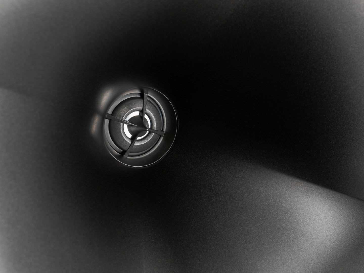 Прежде всего, конечно, на ярких диффузорах СЧ/НЧ-динамиков, выполненных из металлокерамики с медным покрытием, а также на расположенном над ними фирменном гибридном рупоре Tractrix. Он представляет собой конусную воронку во внутренней части и четырехугольную усеченную пирамиду с плавно изогнутыми гранями — во внешней. Эта передняя часть изготовлена из литого под давлением и приятного на ощупь силикона, демпфирующего резонансные колебания и устраняющего возникающие из-за них шумы.