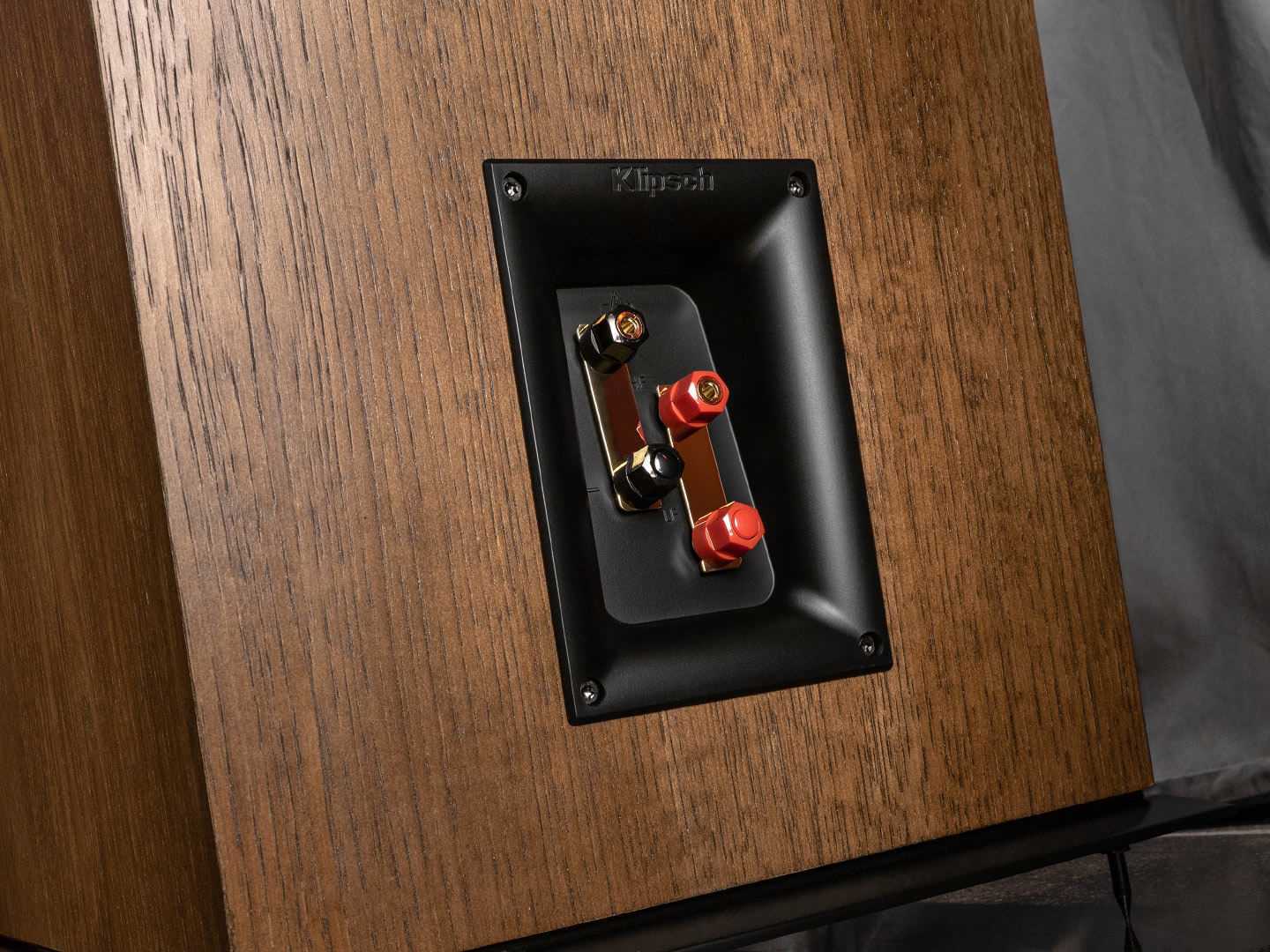Материал отделки — мебельный шпон, и даже есть возможность выбора расцветок: традиционный черный дуб, вишня и орех. Неслыханная по меркам Klipsch щедрость и роскошь! Надо признать, шпон очень качественный, приятный на ощупь, дающий ощущение живого дерева и без 10 слоев царапающегося лака — опять же очень практично.