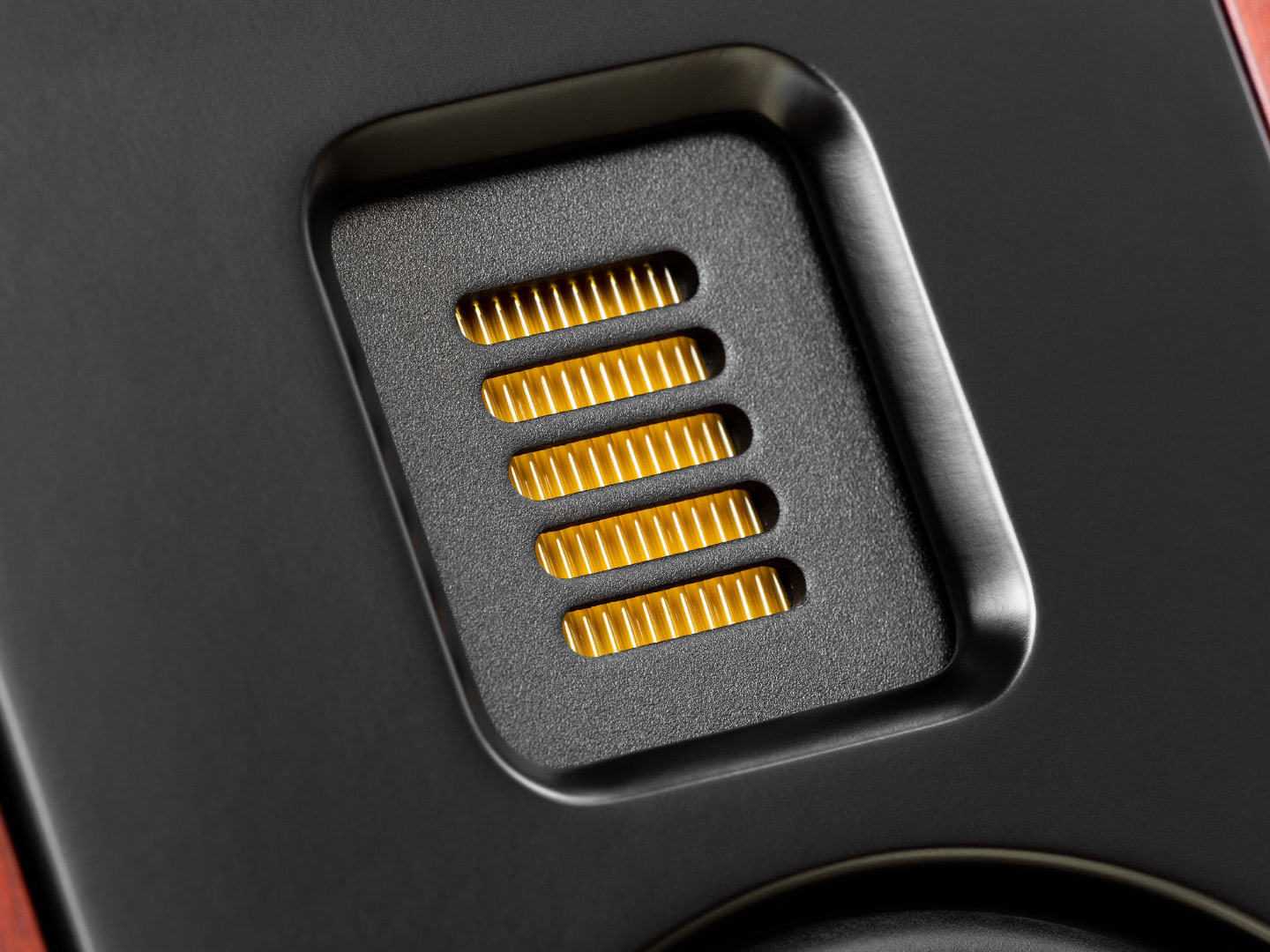 Важной деталью данных колонок, равно как и всей линейки Motion, стал ленточный твитер со схожим названием — Folded Motion. Собственно, это фирменная интерпретация знакомого нам излучателя Хэйла, в котором мембрана с нанесенными на нее контактами сложена «гармошкой», и при пропускании тока соседние гофрированные участки притягиваются друг к другу, создавая акустические колебания