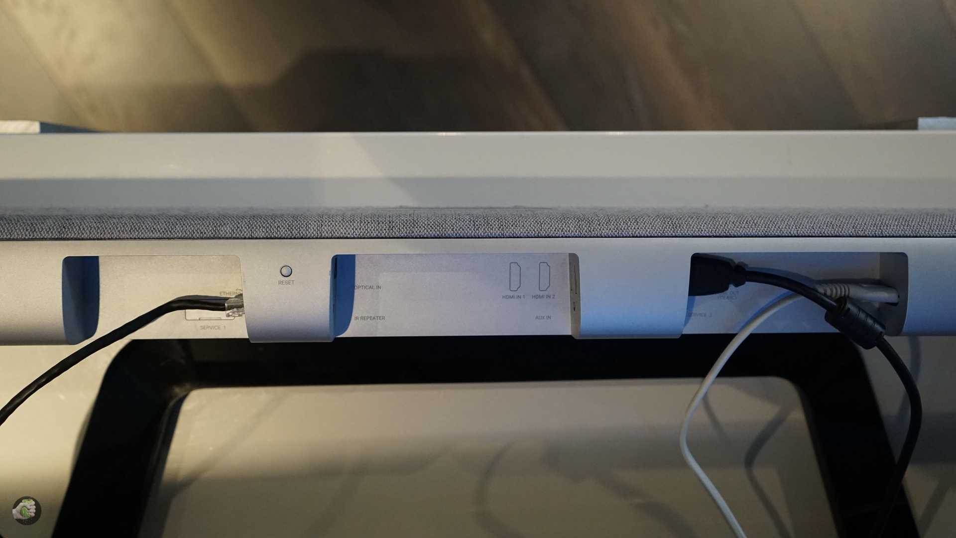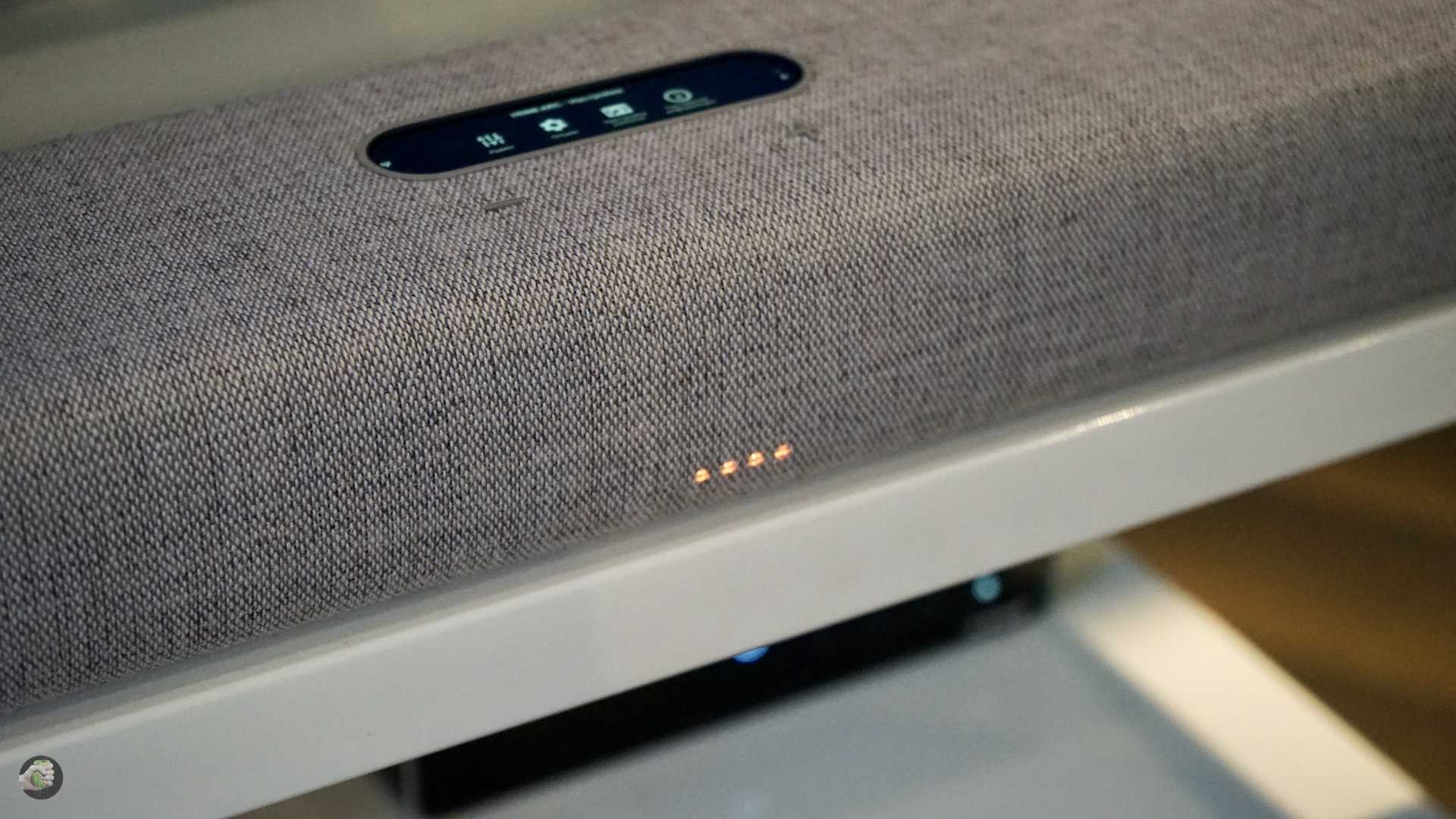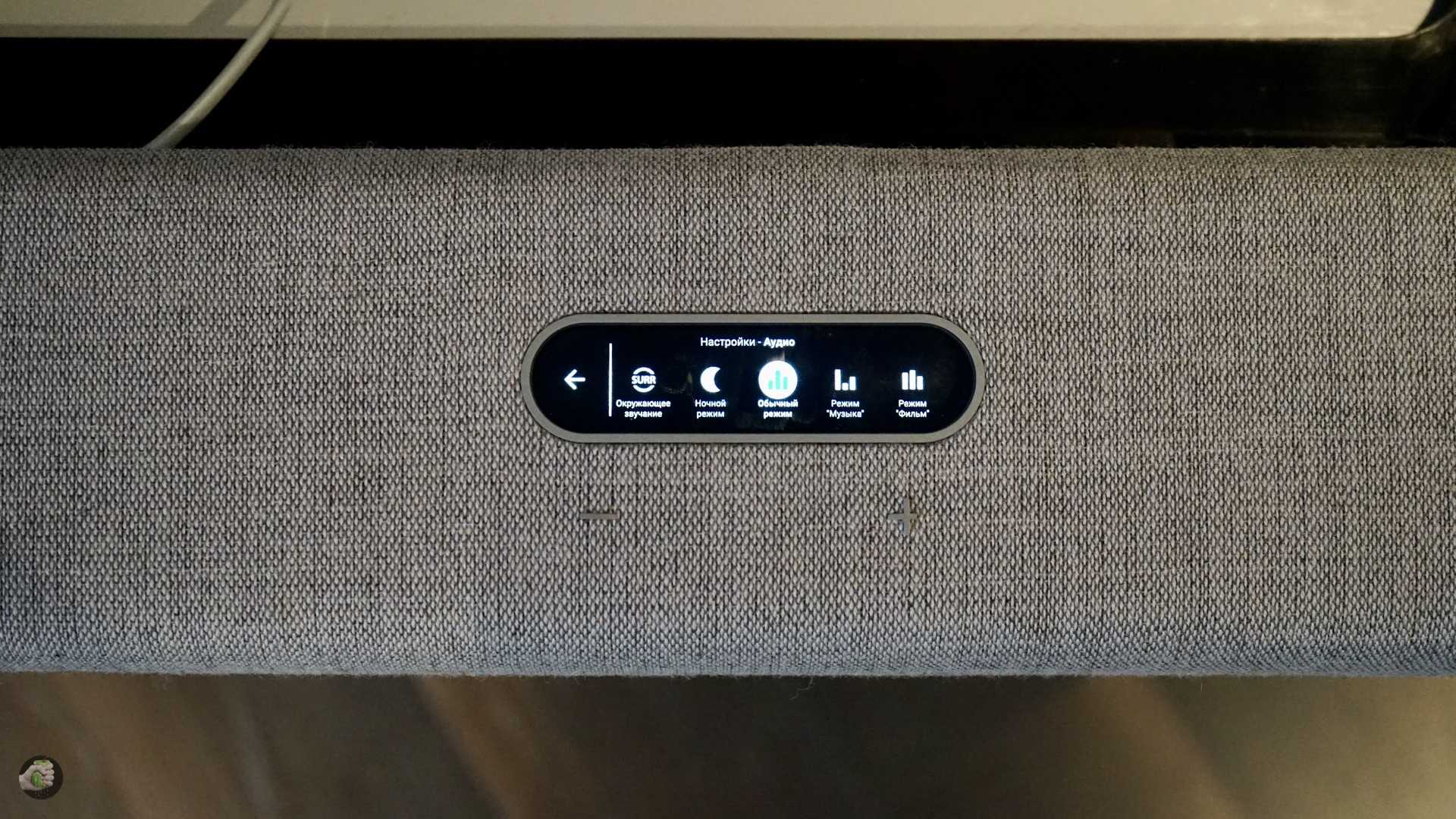 Ещё одна отличительная особенность от Enchant: сверху на саундбаре расположен маленький сенсорный экранчик, тут можно переключить предустановку звука, есть управление воспроизведением и другие чудеса. Так как в комплекте поставляется пульт, особого толка от этого экранчика нет, но выглядит красиво.