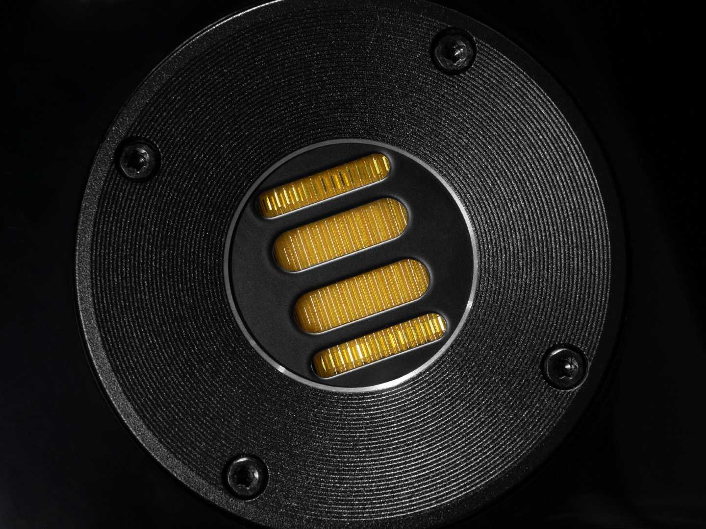 Обрамлен твитер неглубоким металлическим волноводом, который имеет мелкую насечку по окружности и притянут к корпусу на четыре винта. Со слов производителя, волновод точно просчитан и размещен там для улучшения акустических свойств твитера, одновременно корректируя диаграмму направленности высокочастотника.