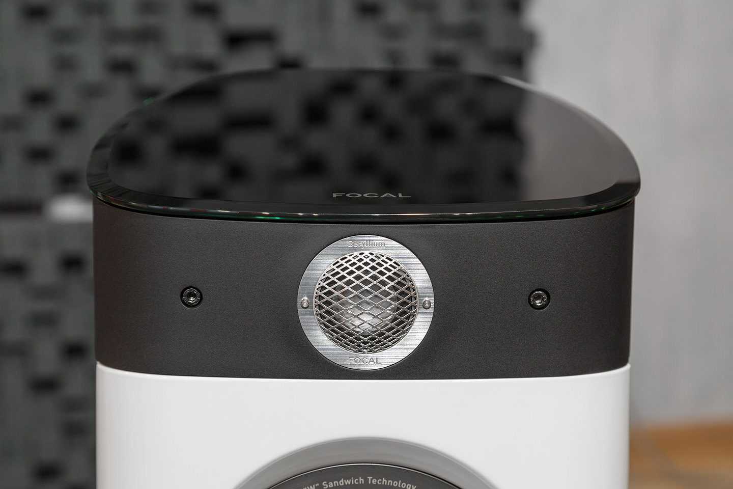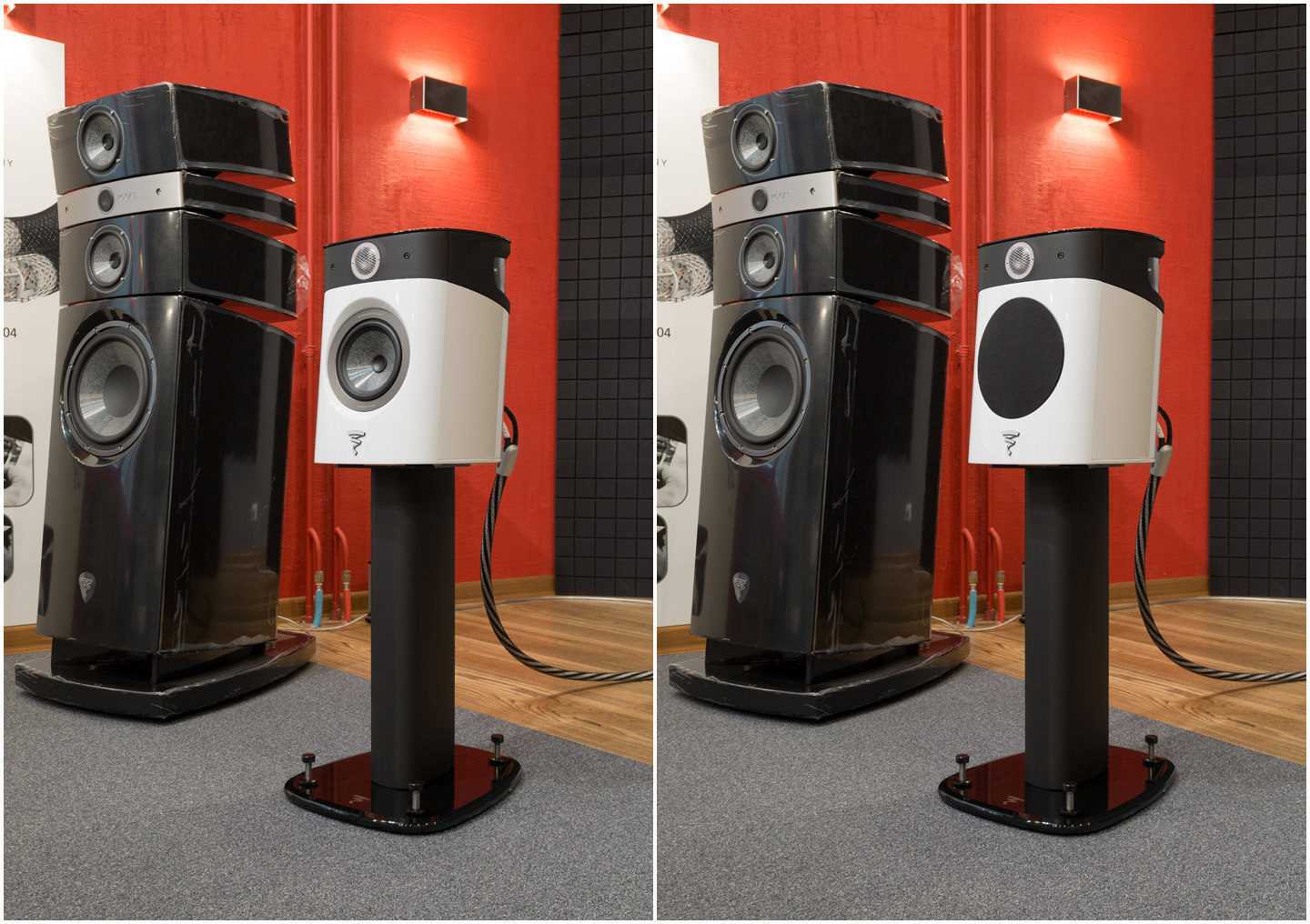 Focal Sopra №1 с защитным грилем и без. Сеточка, закрывающая бериллиевый твитер несъемная