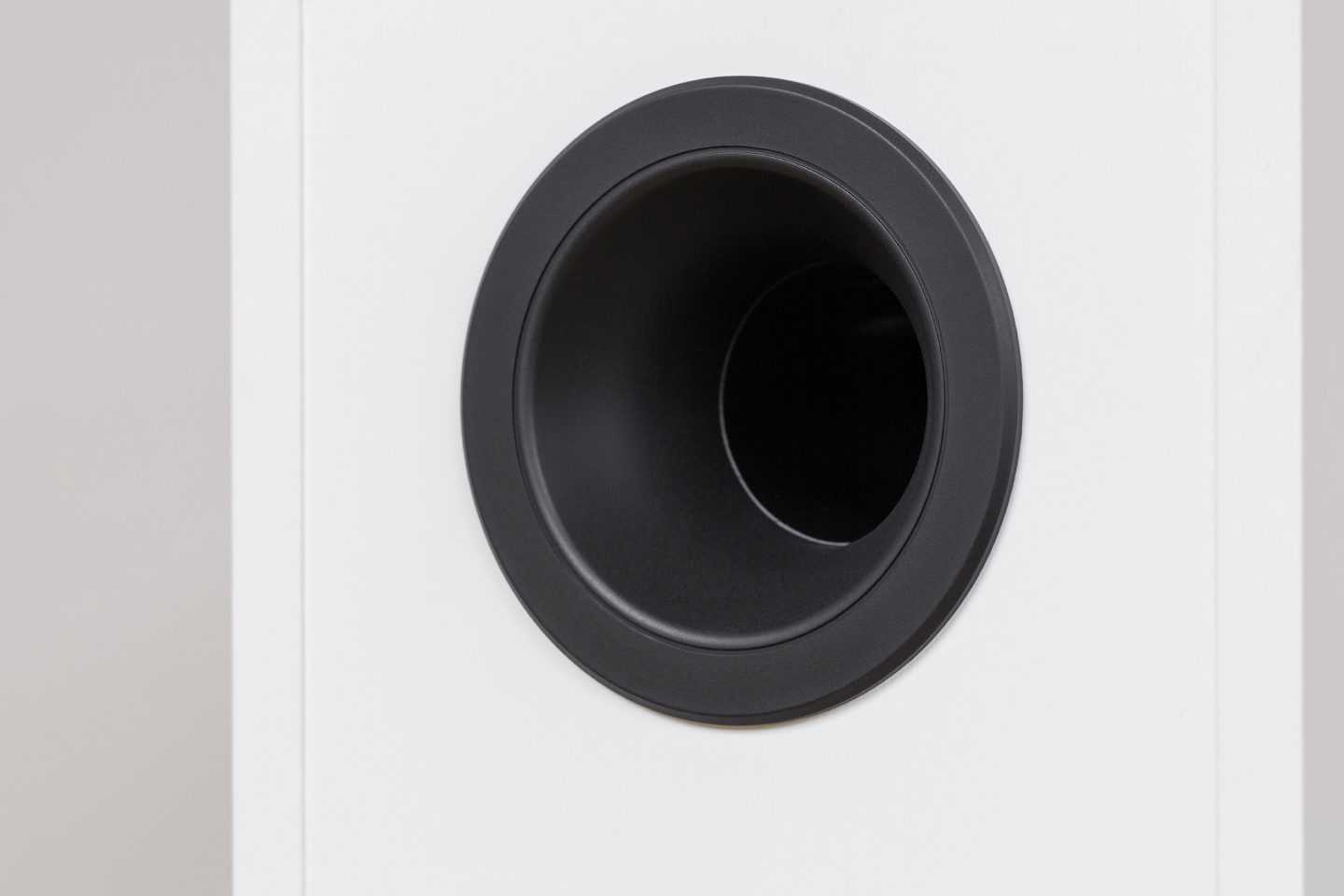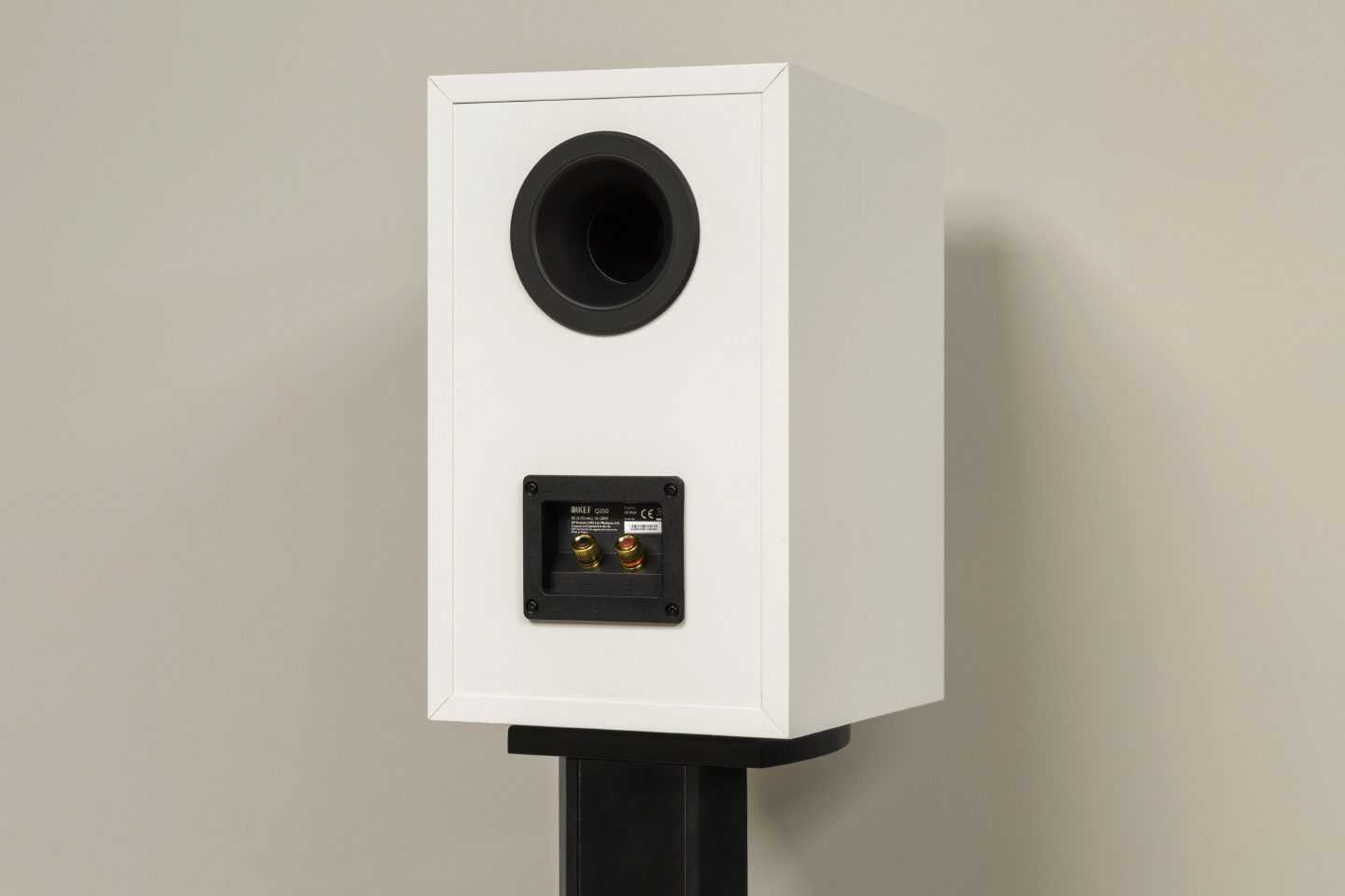 The port has been moved to back of the speaker. KEF claims this ensures any midrange leakage of noise is less audible. The port has also been redesigned to reduce noise and distortion for deeper, cleaner bass performance.