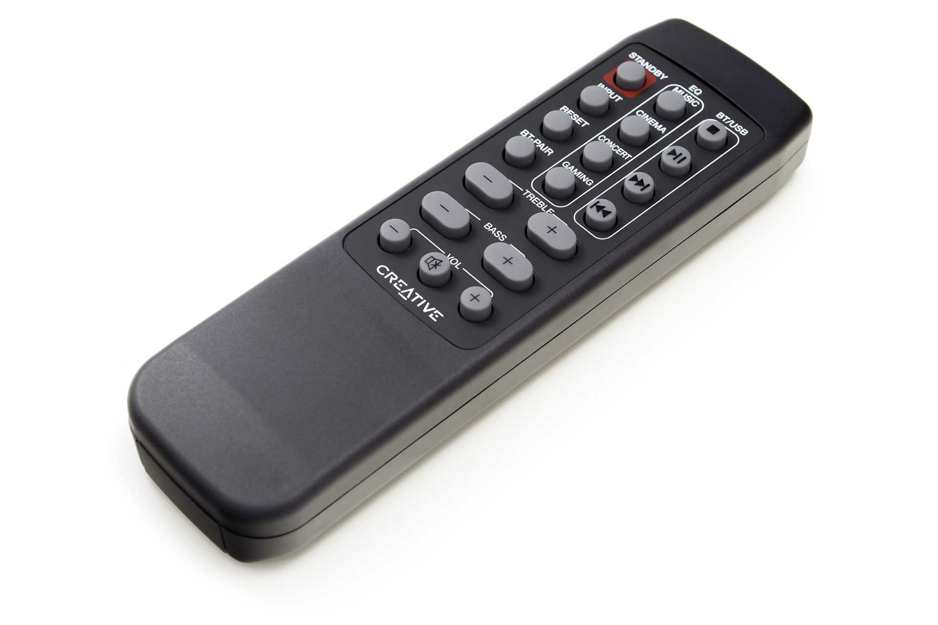 Всё управление акустической системой производится комплектным пультом дистанционного управления.