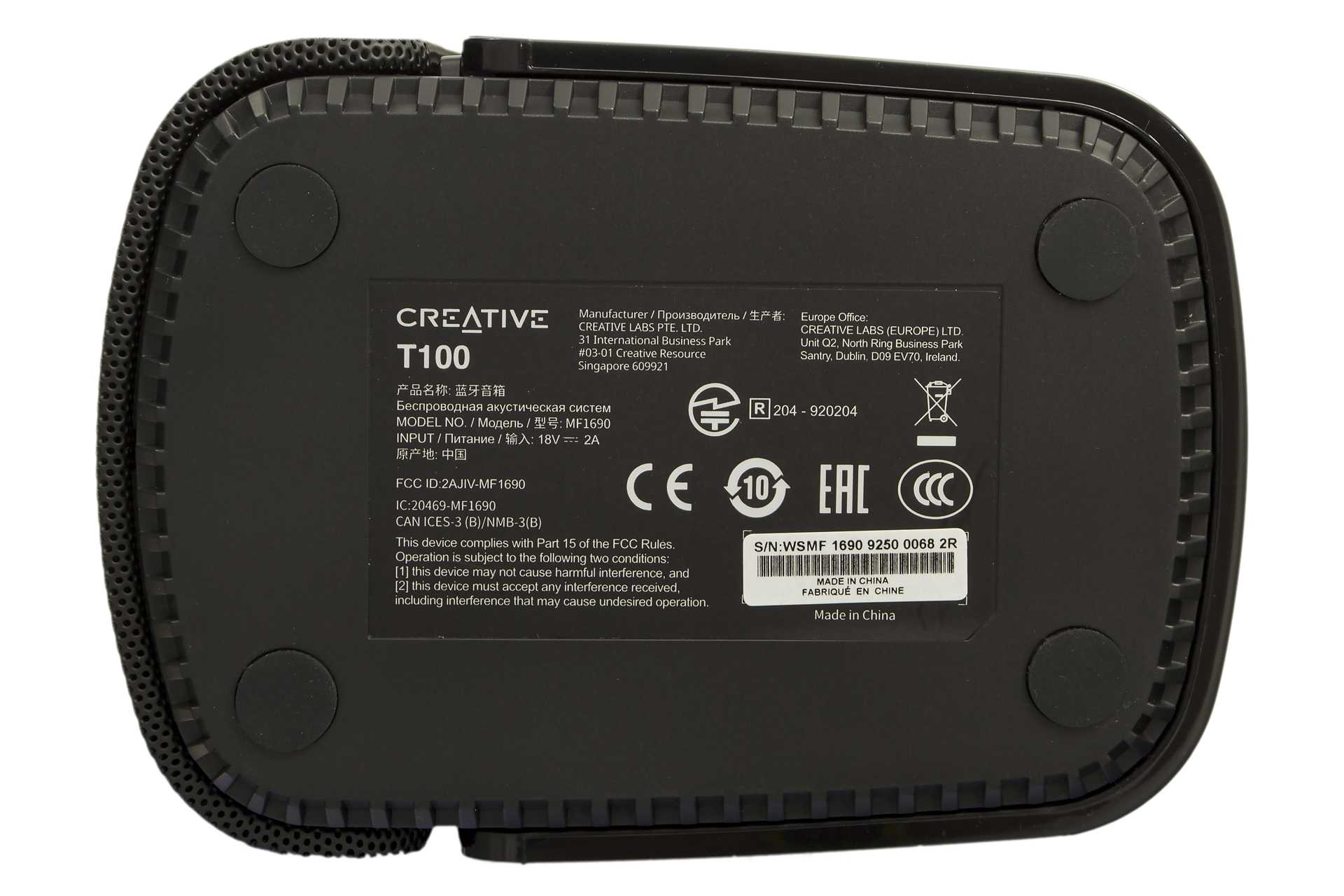 Сборка и материалы изготовления Creative T100 не вызывают вопросов. Фронтальная панель из перфорированного металла выглядит приятно. Кнопки управления на колонках имеют софт-тач покрытие, нажимаются с характерным щелчком. На рабочей поверхности колонки стоят уверенно, не скользят. Разъемы на панели интерфейсов установлены ровно, без перекосов и каких-либо других погрешностей. Изготовление на высоком уровне.