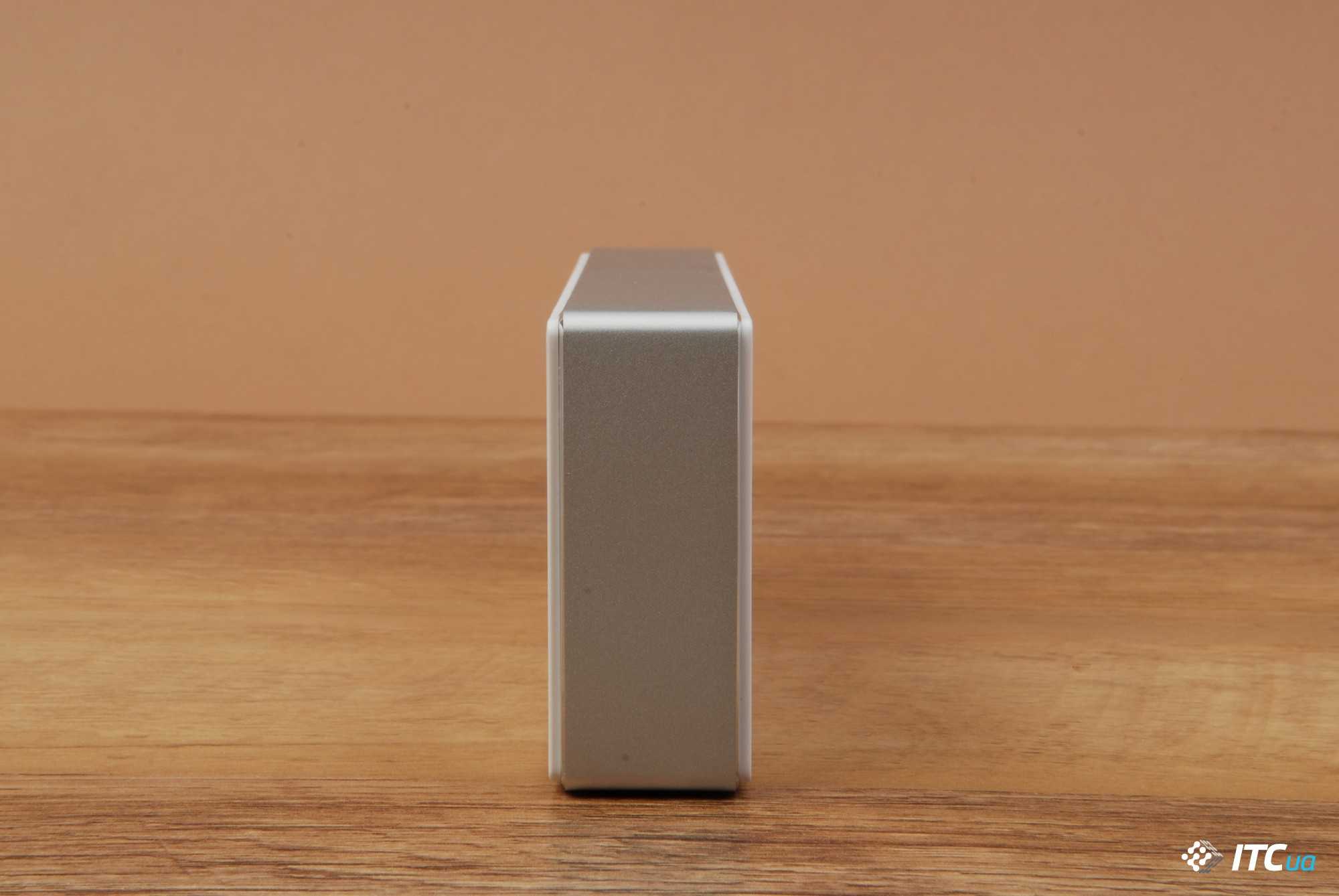 На нижней грани есть две прорезиненные ножки для надежной фиксации на поверхности. На практике колонка устойчива, она не ерзает по поверхности стола. На верхней и задней гранях нет никаких элементов управления, они пустые.