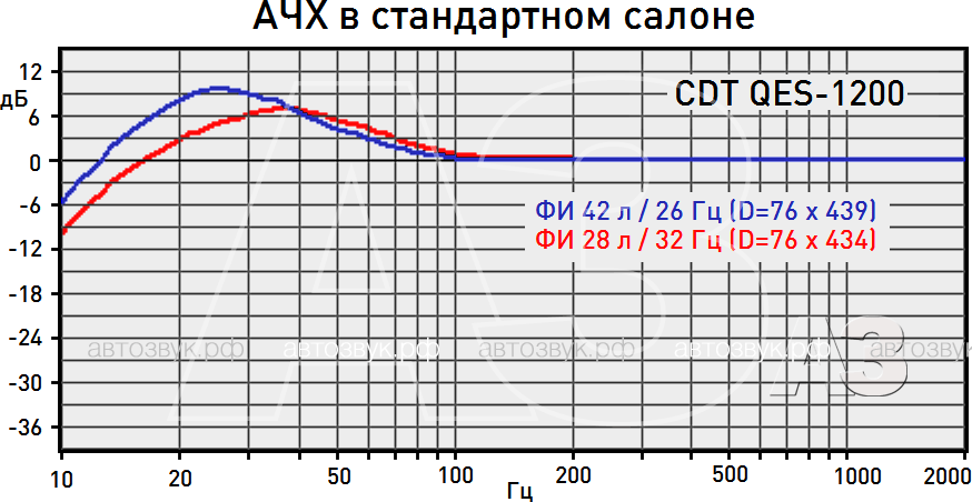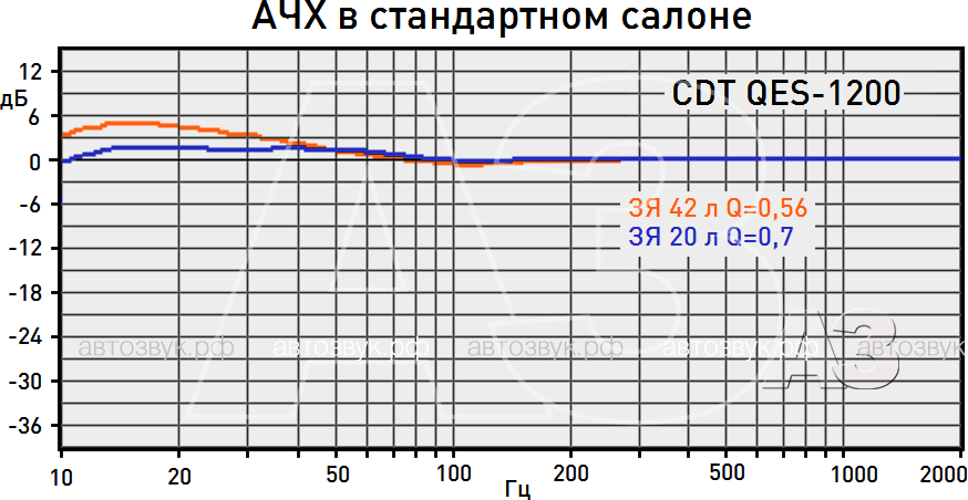 Закрытое оформление можно сделать предельно компактным для «двенашки», а вот разгонять объём не стоит – уже на 42 л добротность выходит на критический уровень 0,56, ниже нет смысла. АЧХ от этого лучше не становится