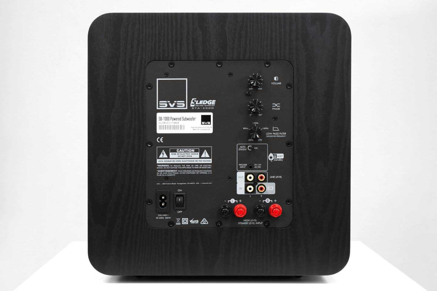 Conservatively rated at 300 watts RMS, 700+ watts peak power, the Sledge STA-300D amplifier maintains precise control of the subwoofer at all drive levels so you can push to reference volumes without distortion. A sophisticated DSP is perfectly tuned to the unique driver and cabinet configuration and its equalization curve is optimized for enhanced transient response and room gain, making the subwoofer sound much bigger than its size. The SB-1000’s ability to start and stop on a dime and stay true to the source material is a performance hallmark normally reserved for much more expensive subwoofers. The advanced DSP engine also allows for fine tuning of audio playback and easy set-up and integration into any home theater or stereo system.
