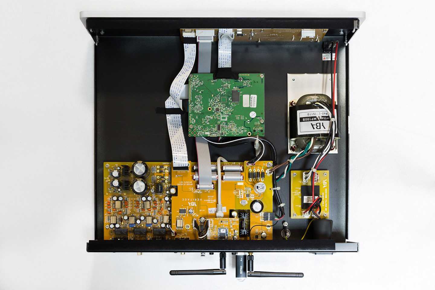В основе фирменного сетевого проигрывателя лежит хорошо известный многим модуль Stream 700 от компании Stream Unlimited Engineering, применяемый в устройствах различного уровня, включая High-End-компоненты. Сетевой модуль поддерживает протокол DLNA, имеет встроенное интернет-радио vTuner, а также может читать аудиофайлы с флешек, жестких дисков и гаджетов Apple (для последних есть отдельный USB порт). Максимальное качество аудиофайлов — 24 бит/192 кГц. Управление осуществляется с помощью приложения, доступного в Google Play и App Store. Одним словом, тут все в достаточной степени стандартно.