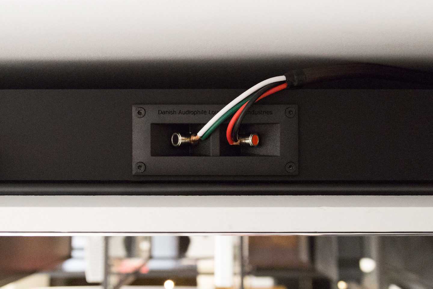 Несмотря на размеры, Dali Phantom S-280 монтируется в стену весьма незатейливым способом, с помощью поворотных креплений типа DogLegs. Корпус из МДФ полностью закрытый, одна пара клемм для подключения акустического кабеля выведена на боковую панель, чтобы не увеличивать монтажную глубину. И стоит отметить, что для акустики существенно меньшей площади монтажная глубина 110 мм — хороший показатель.
