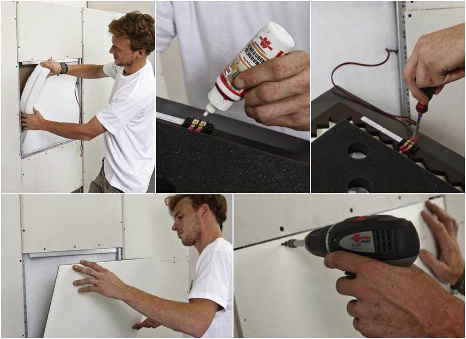 Для представления того, как это все происходит, лучше всего посмотреть видеоролик, на котором показан процесс интеграции колонок в стену профессиональным специалистом компании Ceratec Audio.