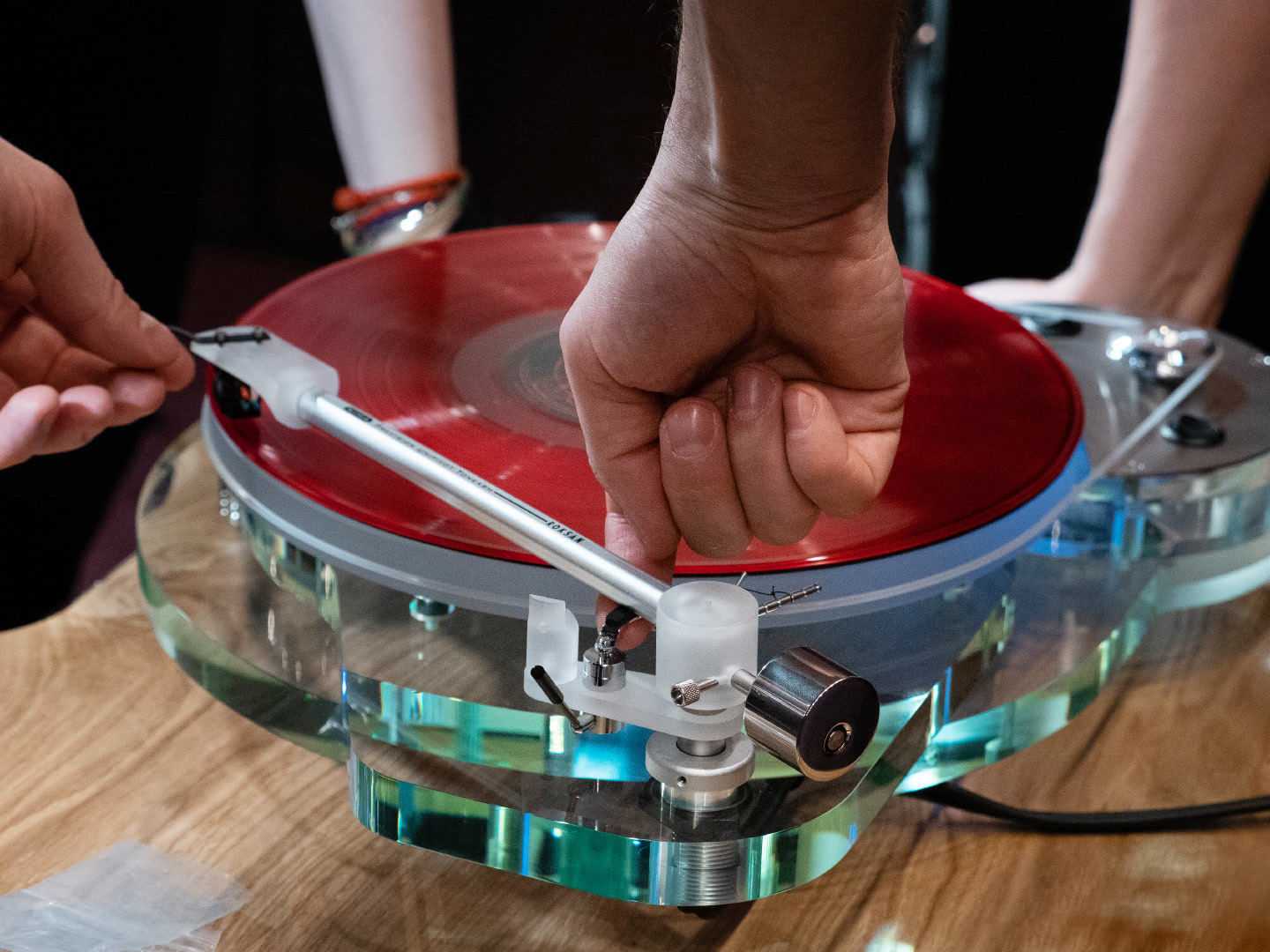 Менее акриловый Pro-Ject X1, и красная пластинка на прозрачном диске без мата дает поистине адский отблеск