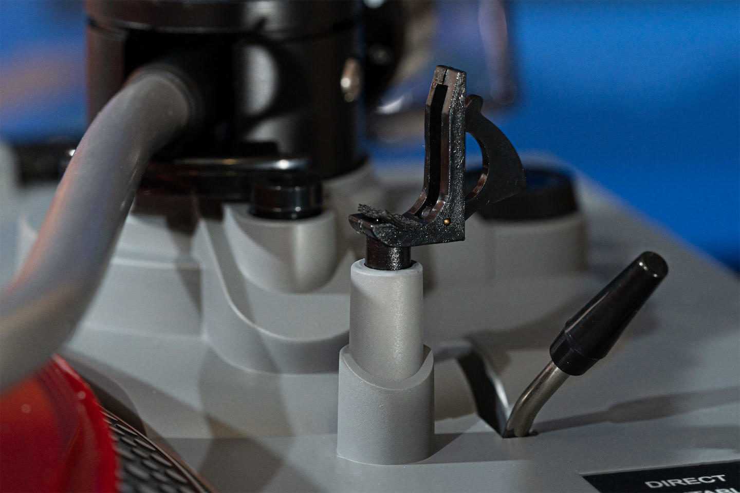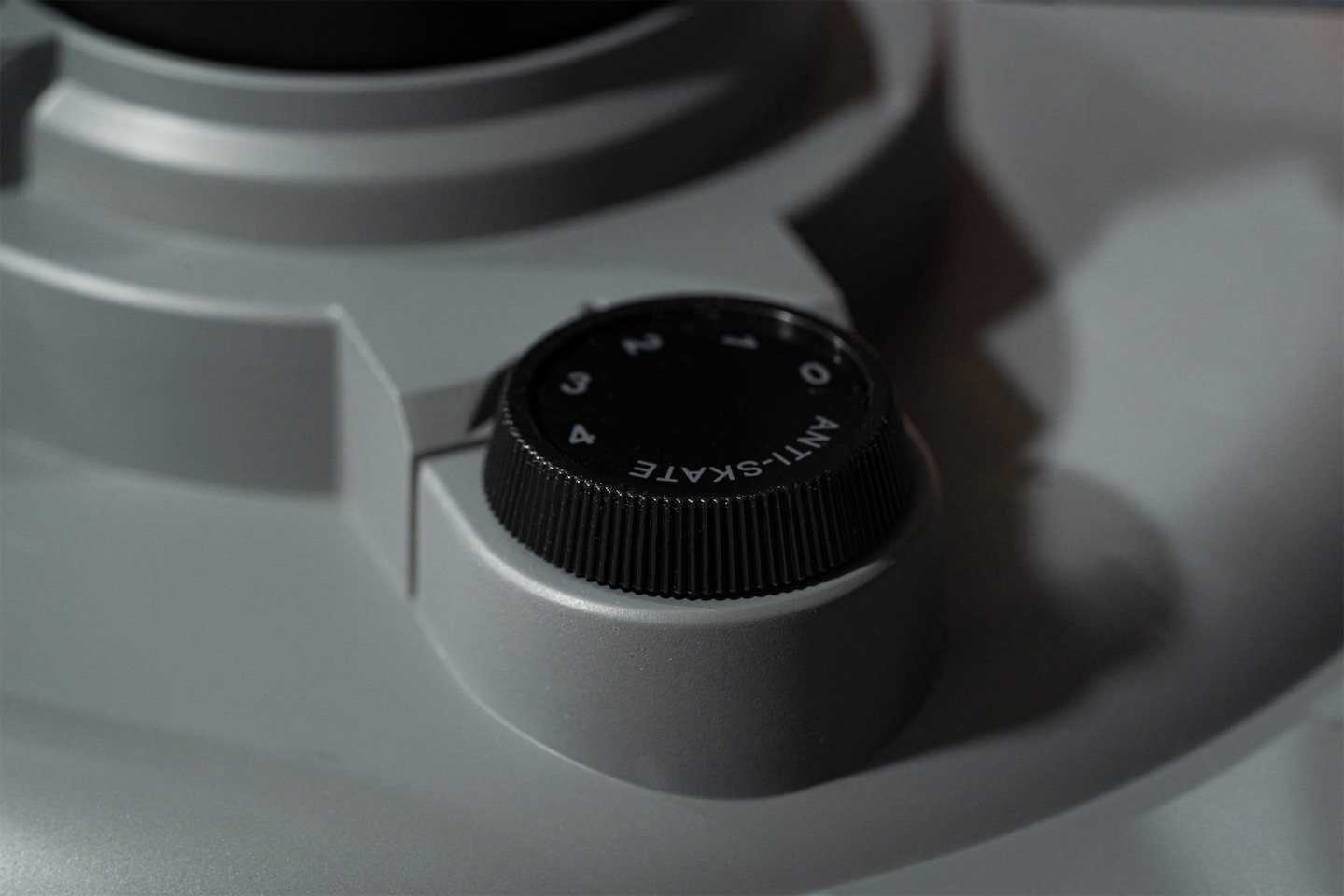Металлическая трубка тонкого, легкого S-образного тонарма оканчивается съемным шеллом — картридж поменять не проблема. В комплект входит привычная уже головка Audio-Technica AT3600. Регулировок у тонарма не очень много — противовес и антискейтинг. В отзывах я вычитала, что у кого-то регулировка антискейтинга не работает, но в моем случае результат был осязаемым. С неправильно настроенным антискейтингом в правом канале слышался регулярный треск — но стоило повернуть колесико буквально на два-три градуса, как треск прекратился.