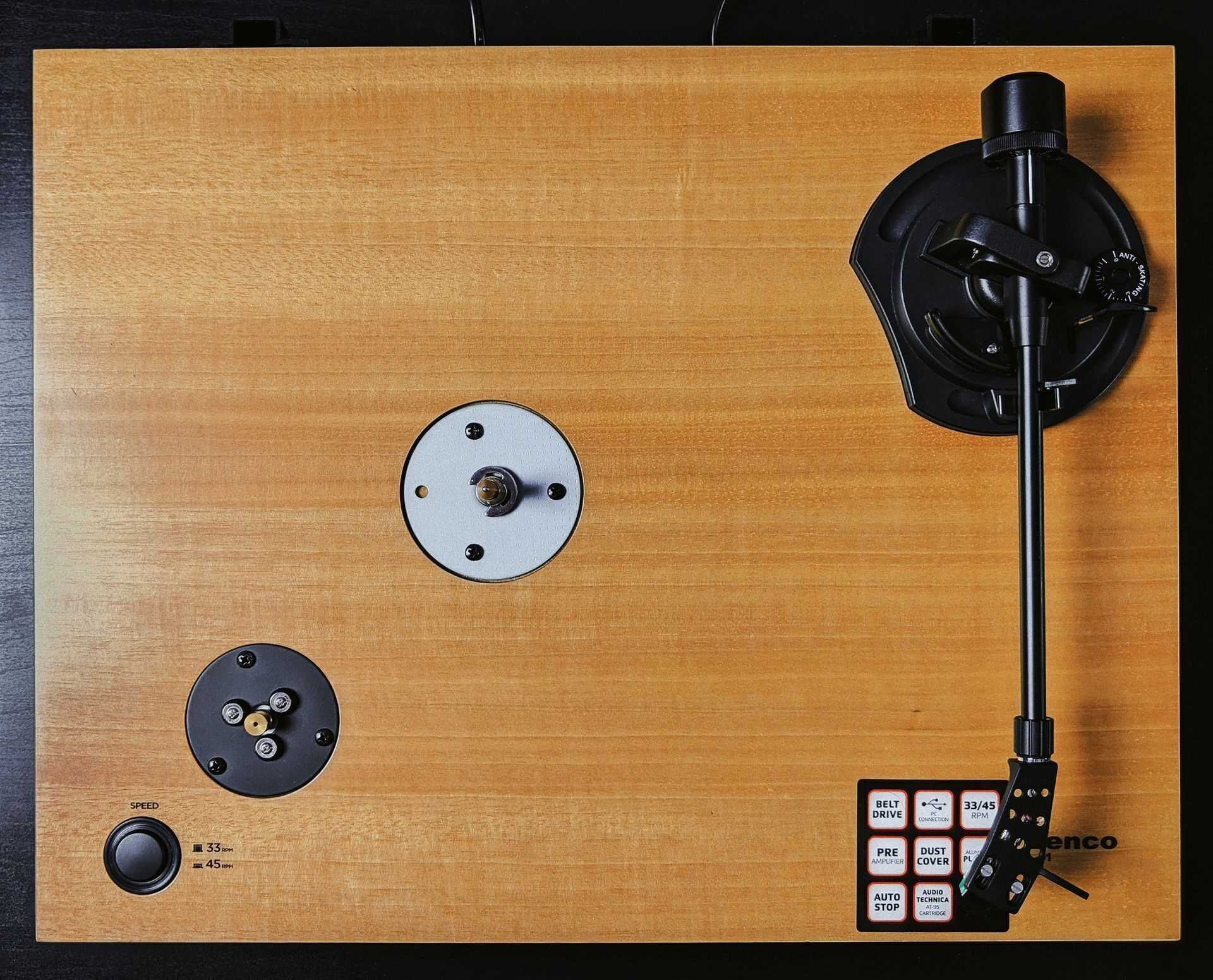 Поскольку мы говорим о проигрывателе бюджетного сегмента, стоит остановиться на том, что может оказаться важным для тех, кто только начинает увлекаться винилом, но уже не смотрит в сторону решений «все-в-одном» вроде Crosley. Вряд ли эти детали удовлетворят запросы опытных пользователей, но они могут показаться интересными для тех, кто только присматривается.К довольно массивному опорному диску прилагается резиновый слипмат, который успешно поглощает любые резонансы от диска. Это стало первым, что я отметил при сборке проигрывателя — резиновый слипмат и вправду очень хороший.