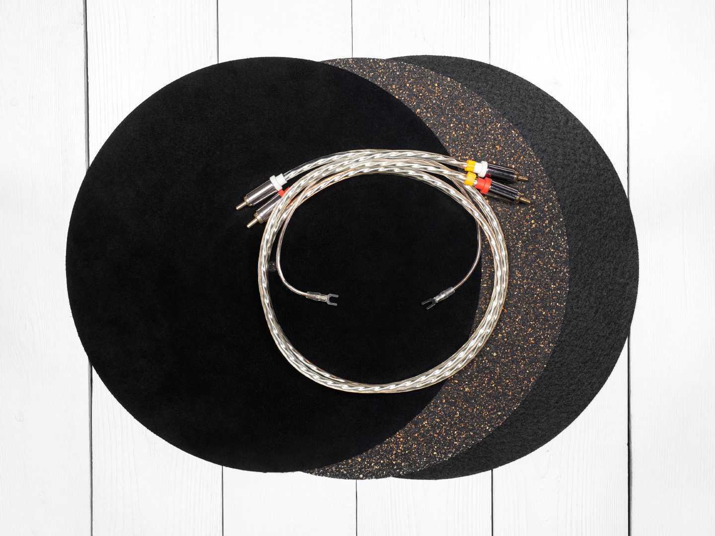 Еще имеется фетровый мат, который при такой конструкции диска просто необходим. Кроме того, в комплект к проигрывателю я взял пару матов Pro-Ject — из пробковой и резиновой крошки Cork it и кожаный Leather it. Впрочем, они не копеечные, и далеко не каждому будут интересны в качестве апгрейда для этого проигрывателя.