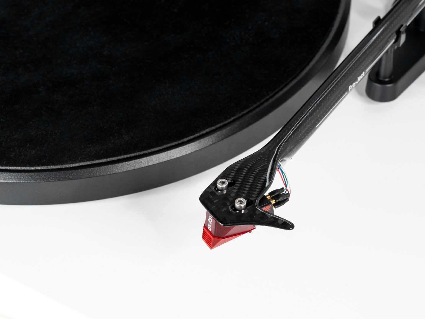 Тонарм проигрывателя отвечает за слово Carbon в названии — его трубка изготовлена с применением углеволокна. Тонарм короткий, с эффективной длинной 8,6 дюйма, и легкий — эффективная масса всего 6 грамм. Конечно, конструкция проще, чем у того же Pro-Ject 9cc, но это объясняется классом проигрывателя. Однако в целом тонарм скорее неплох — и прекрасно видно, что он родной.