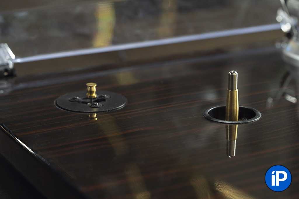 Если поблизости нет колонок – не беда, музыку можно слушать и через встроенные в проигрыватель динамики. Причём деревянный корпус работает не только как поглотитель вибраций от звука, но и как резонатор, слегка усиливая его.