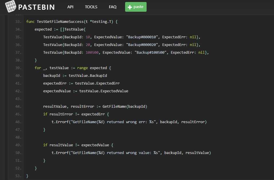Простой пример: у нас есть функция на Go, которая получает id бэкапа и возвращает имя бэкап-файла: