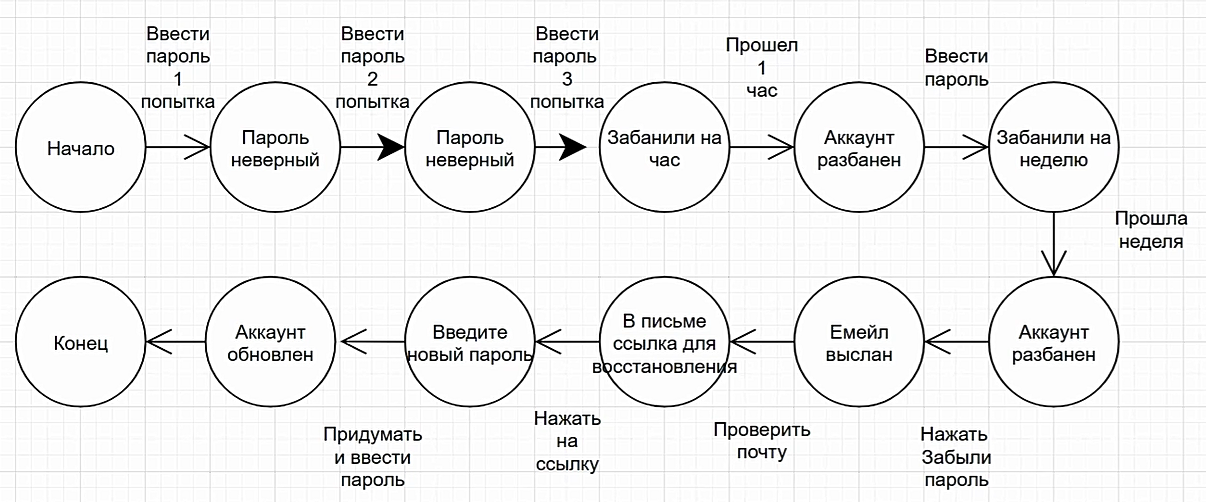 Пользователь нажимает на ссылку для восстановления пароля, и видит сообщение «Введите новый пароль». Пользователь вводит пароль и аккаунт обновляется.